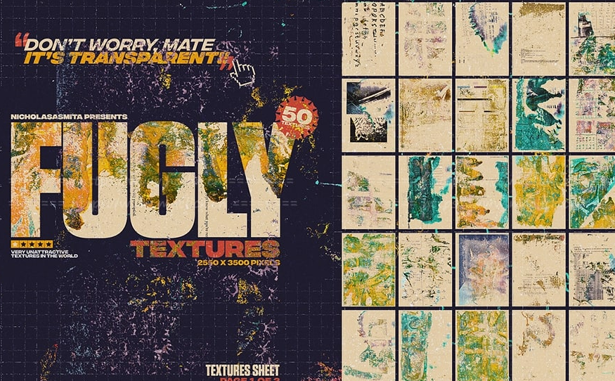 丑陋纹理是一种手工制作的纹理,是偶然用喷枪在废纸上创作出来的。它保留了纸张刮擦产生的自然纹理,以及颜料干燥后残留在纸上的痕迹。这些纹理是透明的PNG格式,几乎可以用于任何用途,例如矢量图形、插画或排版设计。 “丑陋”纹理可以为您的作品增添别样的质感。它能让您的作品看起来更加粗犷、颓废。为了获得更好的效果,您需要将多种纹理结合到作品中。此外,您还可以增加纹理之间的对比度,从而营造出深邃而大胆的视觉效果。 您将获得: 50 张透明 PNG 纹理文件 2550 x 3500 像素尺寸 文件大小:454M