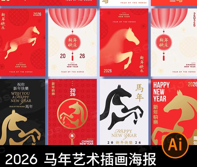 2026新年春节艺术创意高级感马年节日海报展板AI矢量设计素材模板