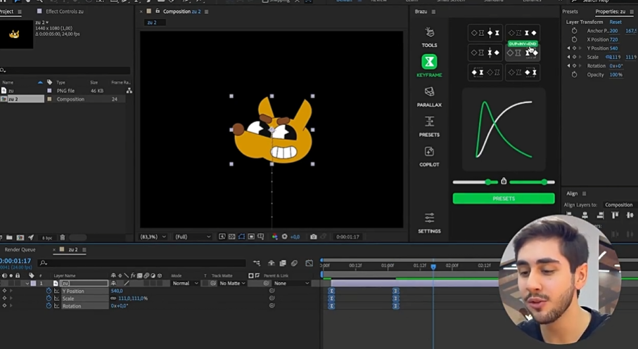 Brazu 是一款面向 Adobe After Effects 用户的智能动画制作插件套件,旨在显著提升动态图形与动画的工作效率与创意输出。它将一系列实用工具、预设和 AI 功能整合在一个插件中,让你在 After Effects 内就能快速创建专业水准的动画,而无需繁琐的手动关键帧调整或复杂图形编辑。 Brazu 的核心亮点包括 Brazu Copilot – 基于人工智能的自动动画助手,可根据静态内容分析并自动生成动画效果,帮助你快速启动项目并克服创意瓶颈;Brazu Tools 提供一键式应用常用动画效果(如波动、闪烁、弹动等),让常见表现更快实现;Brazu Keyframe 简化关键帧缓动调整,让进出场动画更顺滑;而 Brazu Parallax 与 Brazu Presets则分别支持自动生成视差 3D 效果和多种可定制的文本/过渡预设。 Brazu 支持所有技能层级的 AE 用户,从初学者到专业设计师均可受益,特别适合需要提升效率、减少重复性劳动、加速生产流程的动态图形设计师、视频编辑者和内容创作者。Brazu 使在 After Effects 中创建复杂、吸引人的动画变得更快、更智能、更轻松。 脚本支持Win/Mac系统:AE 2026-2023