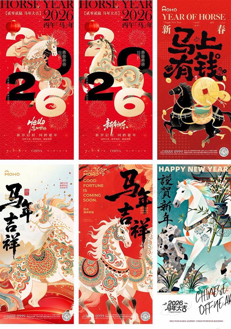 牛年红色喜庆剪纸2021春节传统新年红包舞狮ai矢量插画图素材模板