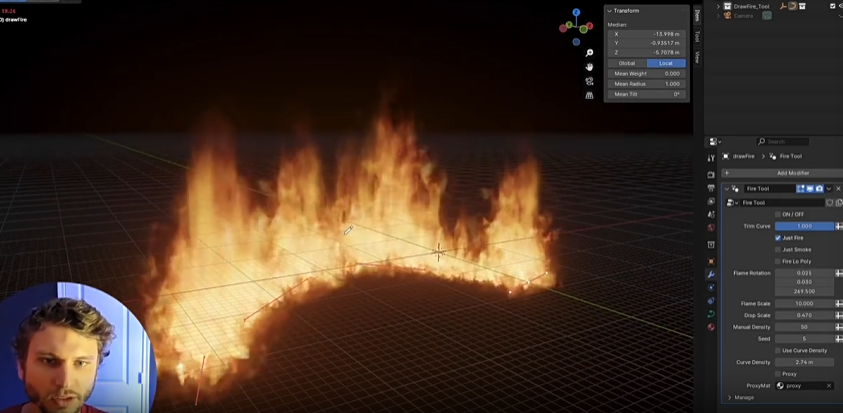 在Blender中轻松沿曲线路径创建实时火焰!这款工具允许您绘制和操控曲线,从而获得炫酷的效果!它内置自定义设置,让您可以根据需要调整火焰效果。这款工具为您提供真正可控的实时火焰效果! 该工具可实例化低多边形对象,并为其映射火焰和烟雾材质。由于未使用烟雾或火焰模拟,因此可节省渲染时间!该工具针对 EEVEE 进行了优化,只要在光路中提高透明通道的强度,它在 CYCLES 中也能很好地工作。
