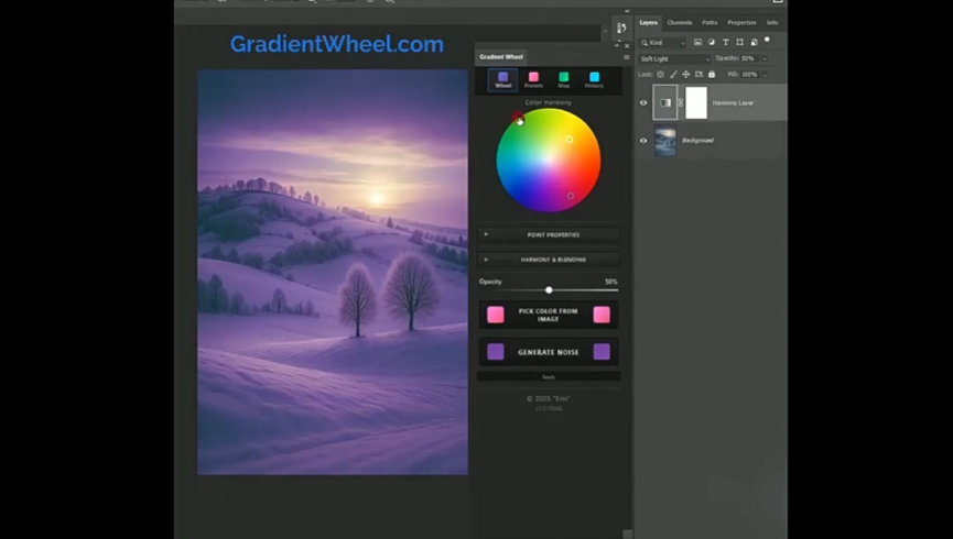 Gradient Wheel 是一款功能强大的 Adobe Photoshop 调色插件,可将电影级的色彩校正功能直接融入您的工作流程。通过直观的色轮界面,您可以像电影和摄影领域的专业调色师一样,精确控制图像中阴影、中间调和高光的色彩平衡。 Gradient Wheel 主要功能: 交互式色轮: 可视化颜色控制 – 拖动色轮上的点即可实时调整颜色 三个色调范围 – 分别控制阴影、中间调和高光 实时预览 –