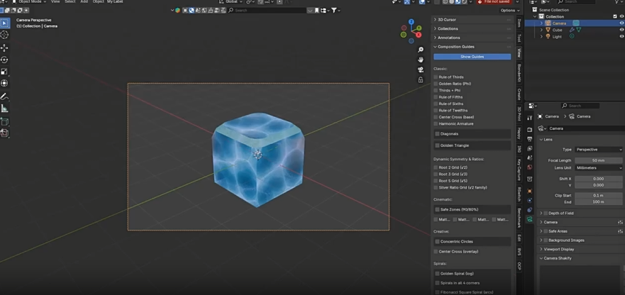 插件它能在 D视图中实时叠加多种行业标准的构图辅助线,如三分法、黄金比例、黄金螺旋、对角线等,帮助用户在构图、摄影、设计和影视制作中更精准地布置主体和画面元素。该插件支持在相机视图和透视视图中显示,可自定义颜色、透明度和线条粗细,并可同时启用多个构图指南,是提升渲染构图专业感的轻量级工具。