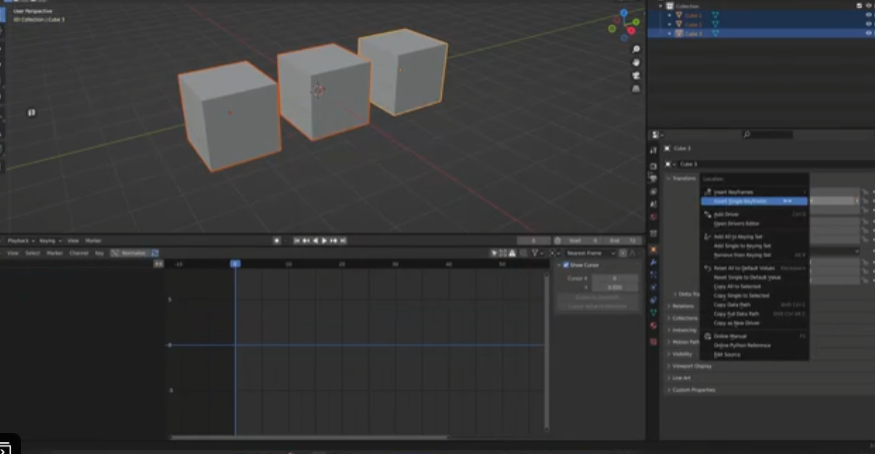 在Blender中为多个对象添加动画非常不直观且困难。目前它需要使用键盘快捷键,即使如此,为那些不在预设关键帧集中的属性添加关键帧也令人非常困惑。Key Selected Objects插件让操作变得更加清晰直观。只需选择要添加动画的对象,右键单击属性,然后选择“为所有选定对象添加关键帧”。您还可以为组中的所有多维属性(例如位置、旋转、缩放等)设置关键帧,并删除关键帧!它也适用于具有匹配表面着色器的材质(例如具有 Principled BSDF 的材质)。