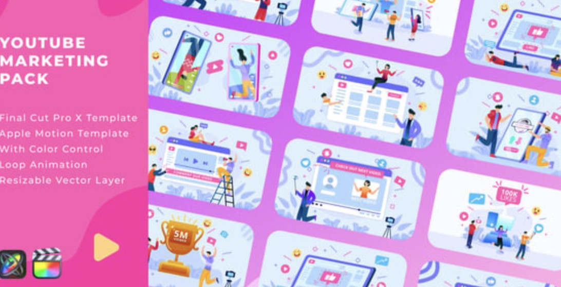 适合制作YouTube 频道宣传、社交媒体推广、演示和信息图动画等内容。它提供10 套预制场景和循环动画,所有元素都可自定义颜色和参数,包括可调整大小的矢量图层、文字、图形和排版设计,通过简单拖放就能快速创建专业的营销视频。我们打造的模板注重实际应用,设计风格简洁、现代且独具特色,并高度重视每一个细节。