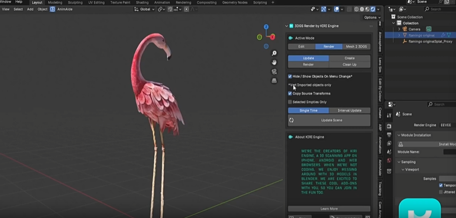 插件能够将 3D Gaussian Splatting(3DGS)扫描数据直接导入并在 Cycles 和 Eevee 中实时或离线渲染,通过“编辑模式 + 渲染模式”的双工作流,实现从扫描数据清理、转换到最终画面输出的一体化流程,让真实场景资产可以像普通3D模型一样在 Blender 中高效处理与合成。