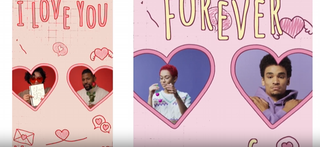 只需上传你的照片或视频,编辑文字,就能在几秒钟内完成美丽的情人节或婚礼开场白。