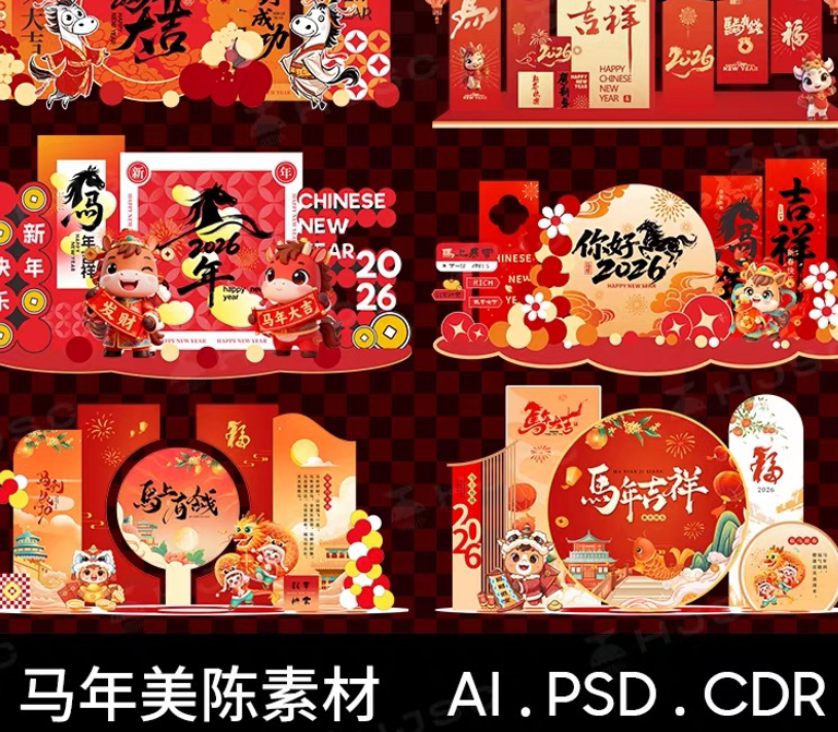 2026新年马年红色企业年会KV主视觉海报展板签到处舞台背景PS素材