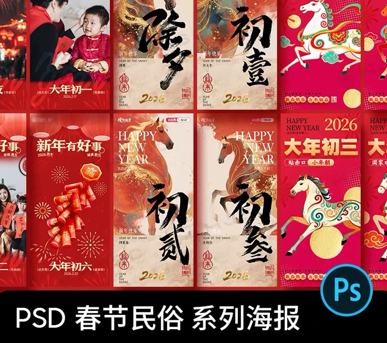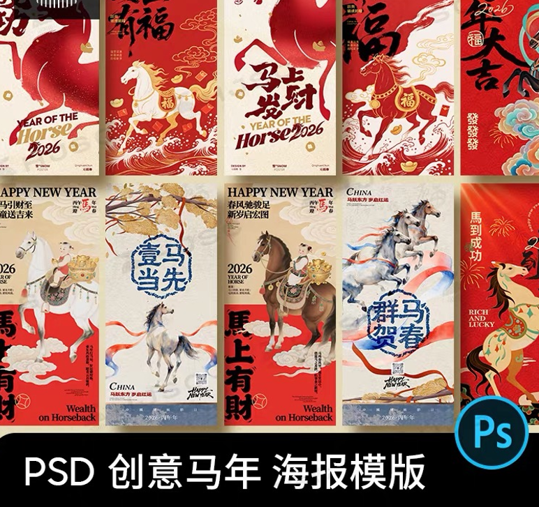 2026新年快乐马年主题新春节日H5创意图案海报ps设计素材psd模版