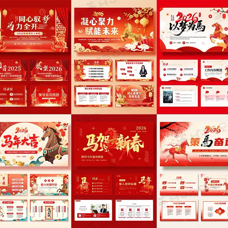 2026马年新年春节PPT模版年终工作总结新年计划企业年会活动策划