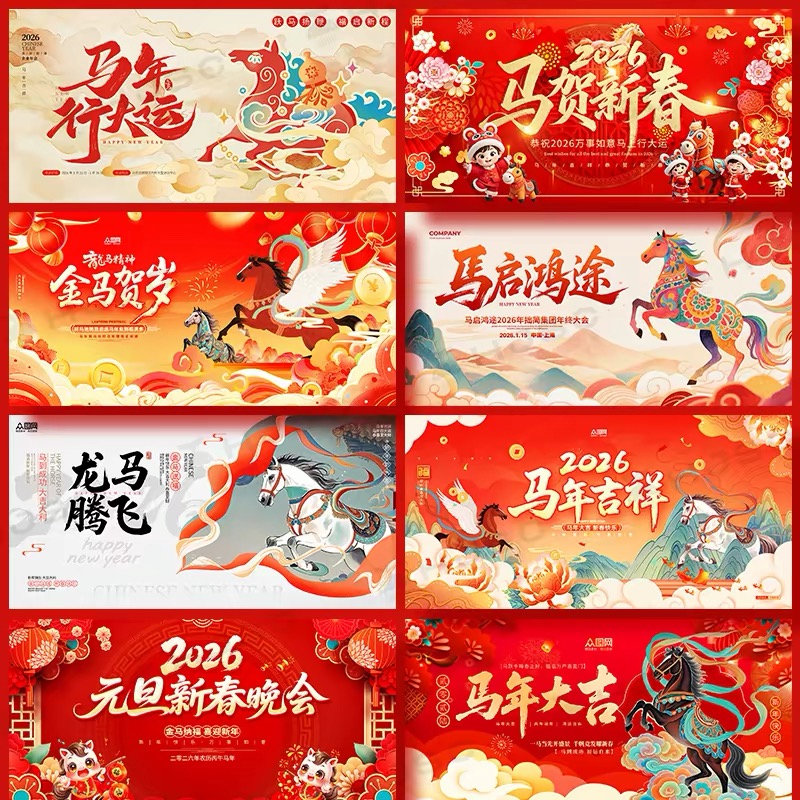 2026马年春节新年晚会企业年会舞台背景海报KV主视觉设计素材PSD
