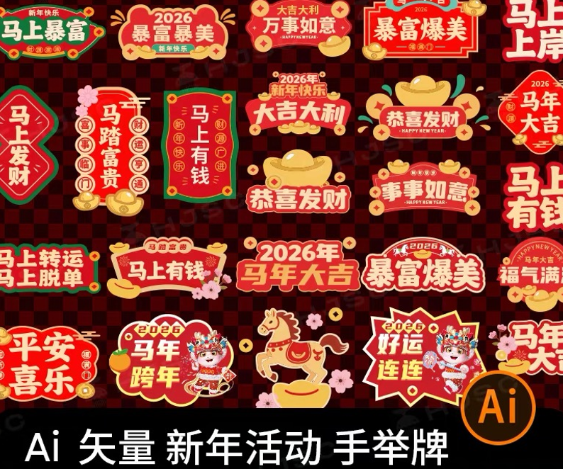 2026马年新年元旦异形手举牌年会活动拍照道具kt板ai矢量设计素材