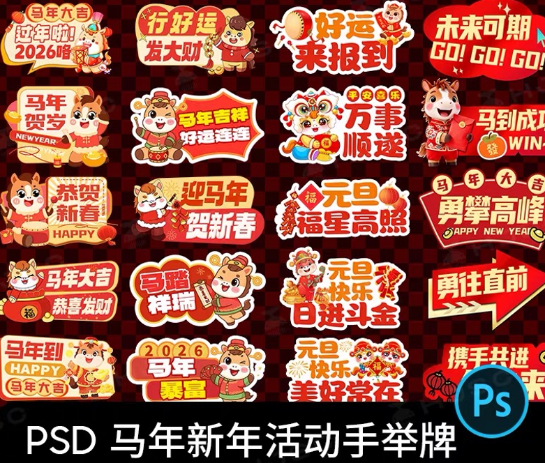 2026马年新年元旦春节手举牌年会活动拍照手拿道具PSD设计素材PS