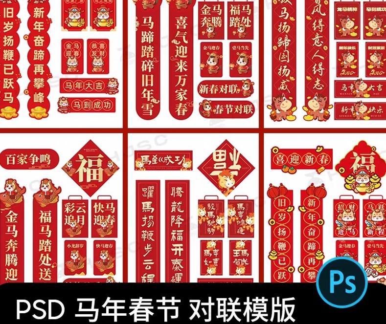 2026马年新年春节对联国潮卡通春联福字贴PSD设计素材物料PS模板