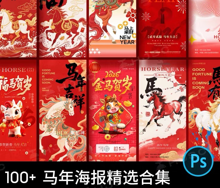 2026马年新年春节活动促销年会H5海报插画PSD设计素材模板图PS