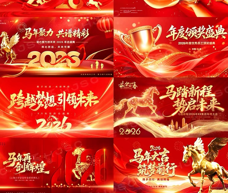 2026马年企业年会新年晚会舞台背景海报KV主视觉设计素材模板PSD