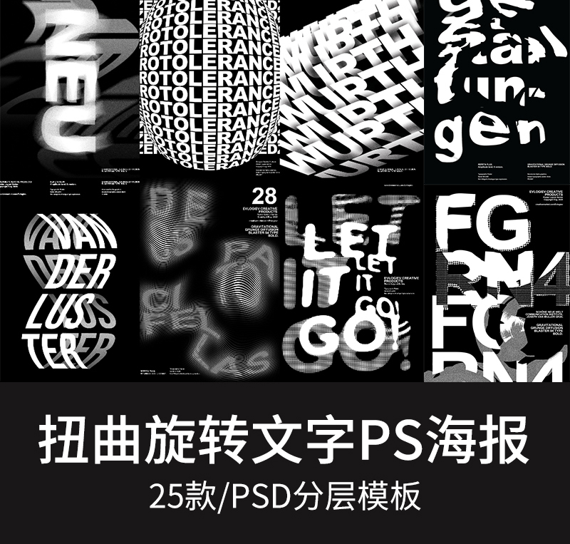 扭曲旋转失真创意文字特效海报排版模板PSD设计素材