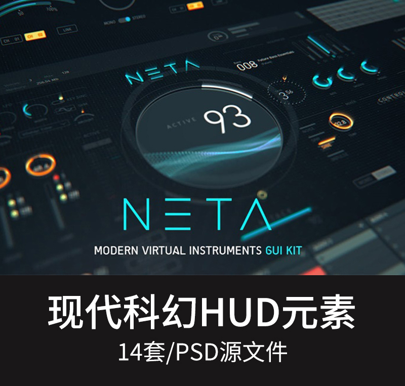 高科技未来科幻HUD界面数据UI元素 PSD分层源文件素材