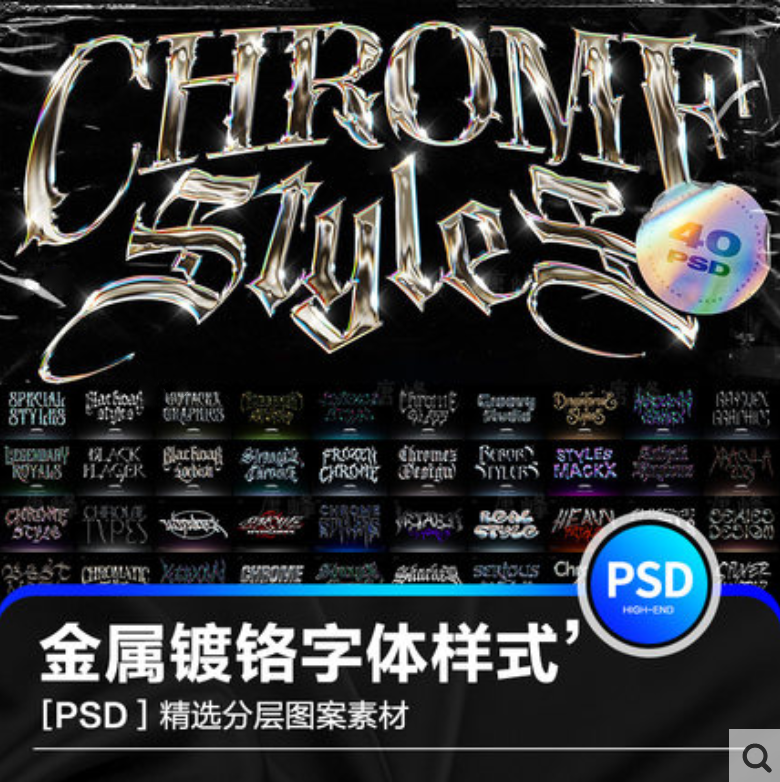 潮流科幻未来3D金属哥特酸性字体设计PSD样机素材