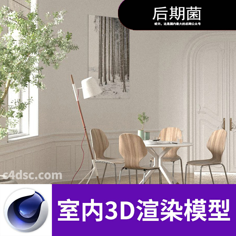 C4D FBX 3D Corona墙面书柜书架台灯带材质贴图三维模型素材