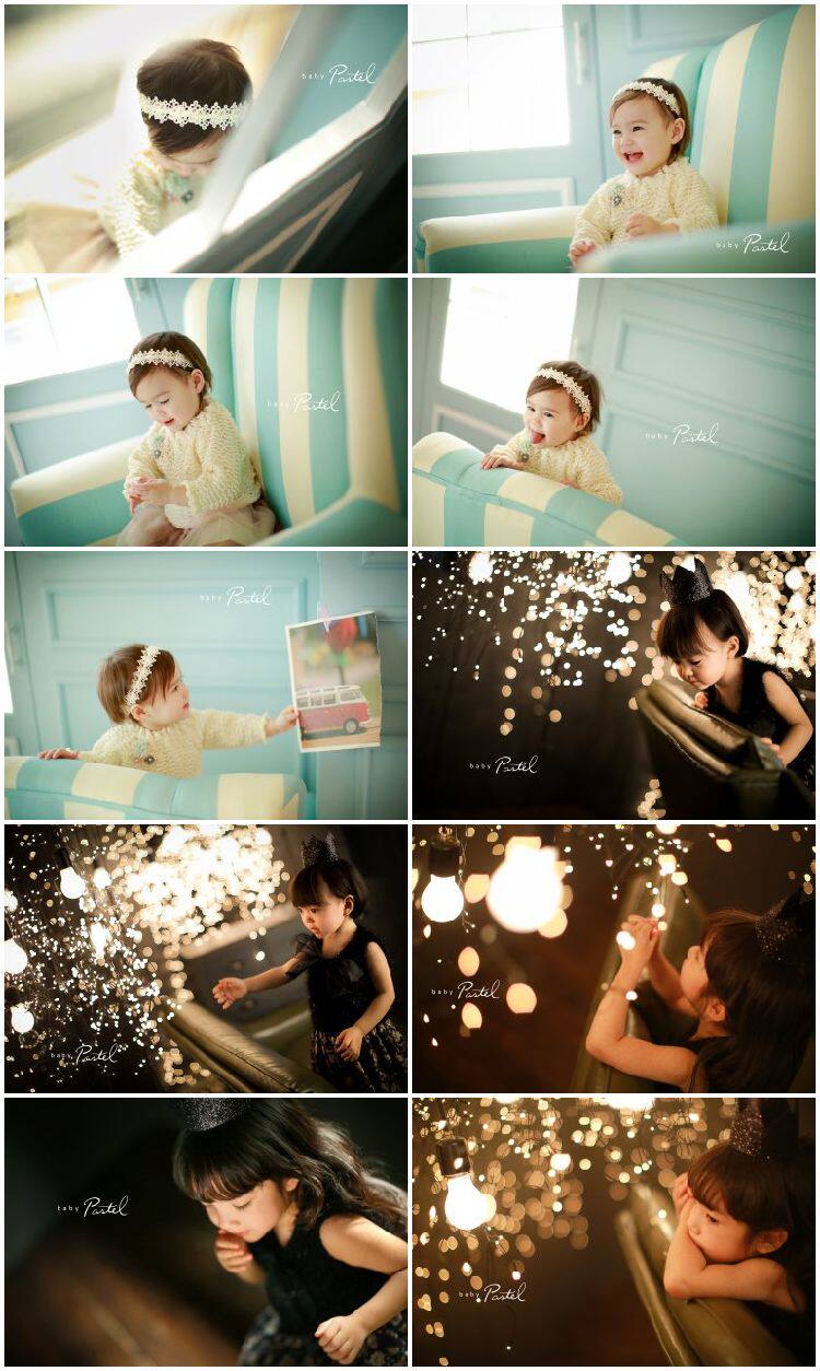 儿童宝宝婴儿满月百天卡哇伊卡通摄影换背景PSD模版后期合成素材