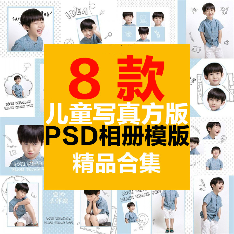 新款儿童宝宝酷潮宝贝百天照片纪念相册10寸竖版影楼PSD模板素材