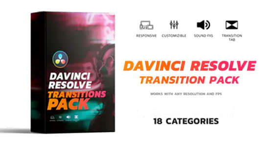 拥有18个类别:小故障,透视图,滚动,漏光,旋转,运动,模糊,缩放等;100多个转场预设,适用于Davinci Resolve和Fusion。您需要做的就是将转场文件复制到Davinci Resolve Transition文件夹中。所有过渡都显示在过渡菜单下。另外,您可以自定义诸如“缩放目标”,“运动模糊”等设置。还提供了转场音效。