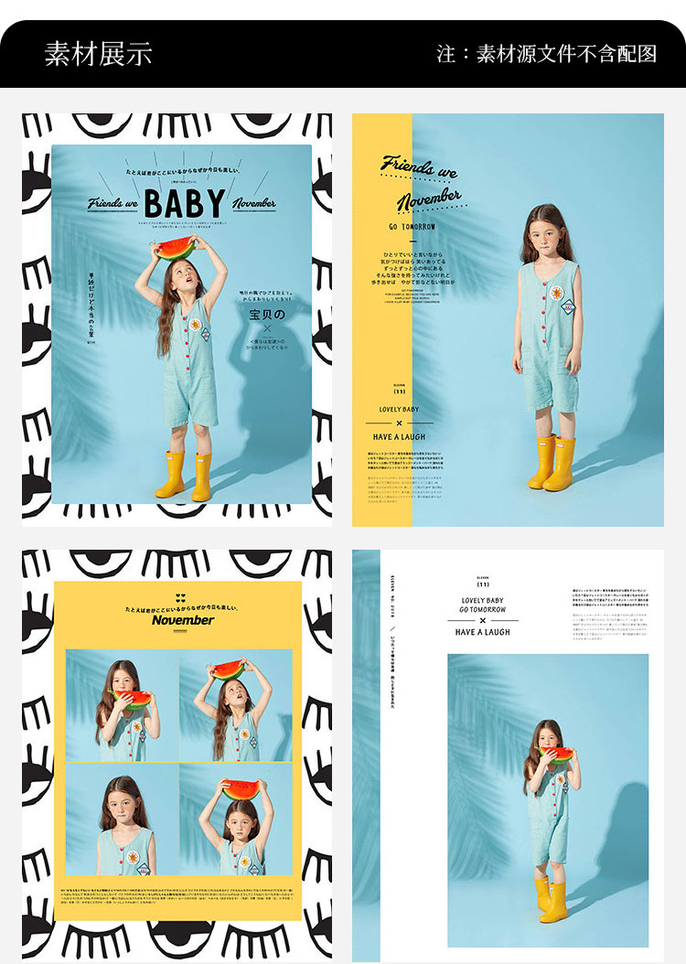 清新简约宝宝写真儿童摄影艺术照片相册模版影楼后期PSD排版素材