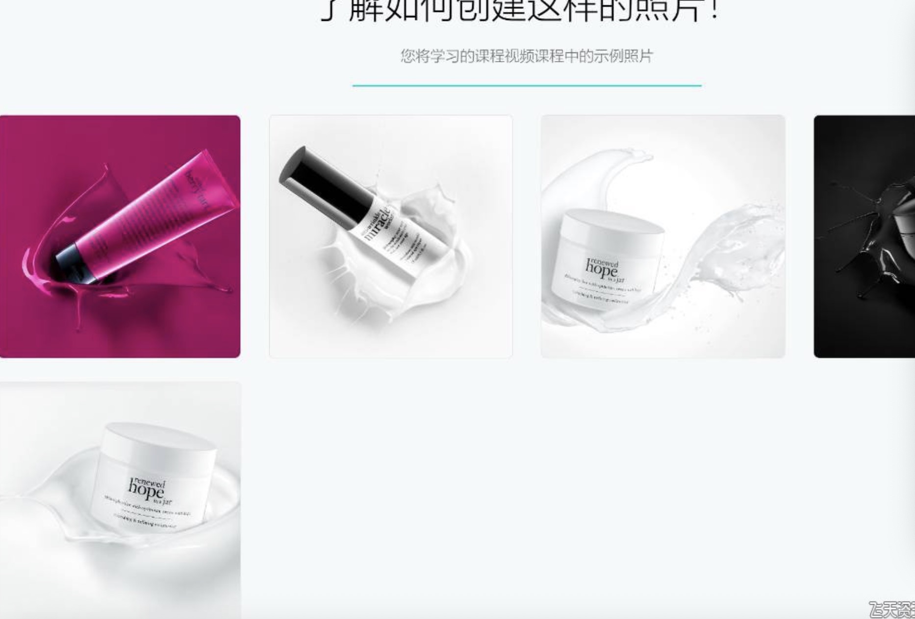 在第一部分,摄影师将学习如何创建可以用于广告化妆品图像的飞溅。什么类型的液体和照明,以及与产品形状相匹配的溅水技术。