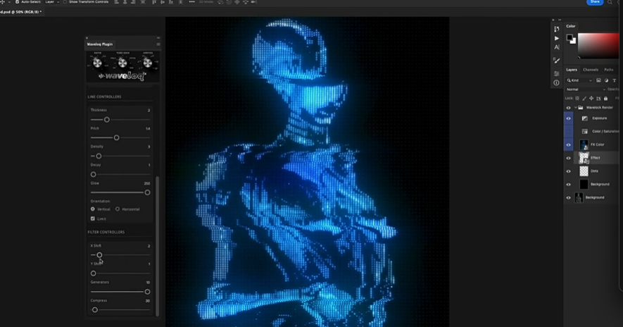Waveloq UXP 插件适用于 Adobe Photoshop,提供丰富的编辑和自定义选项,让艺术家能够开发和创作狂野的赛博霓虹灯效果。制作电路弯曲效果从未如此简单!