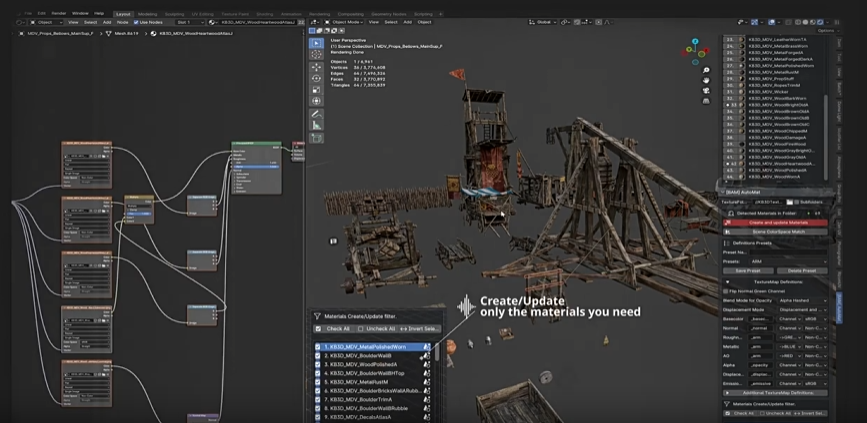 BAM Blender AutoMat 是一款专为 Blender 设计的插件,旨在简化大规模材质的批量创建与管理,特别适用于需要处理大量材质的用户,如使用 Substance Designer 创建材质库的艺术家。此款插件旨在填补 Blender 在材质批量处理方面的空白,特别是为从 Maya 转向 Blender 的用户提供类似的工作流程。