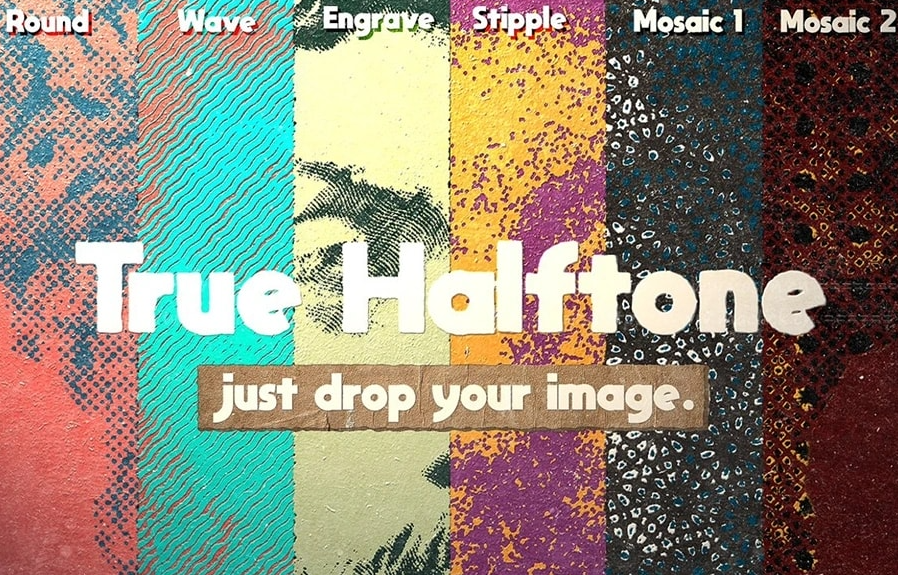 将您的图像放入此 PSD(6 个画板)并获得真正的半色调(简单圆形、波浪、雕刻、点画、马赛克 x2)效果。 在 60 秒内创建独特的设计。 1 PSD – 6 个带有智能对象的画板 ,您可以通过导出为 PNG 来快速导出您的图像(获得一个完美的图像,在您的设计中使用没有背景)或添加您的文本并继续在画板中设计。 您可以控制: 粒度和线粗 对比度和强度 粒子形状扭曲 等等 额外的内容: 很多梯度图 马赛克图案 又脏又臭的纹理 50张纸JPG背景 15个PNG灰尘和划痕纹理