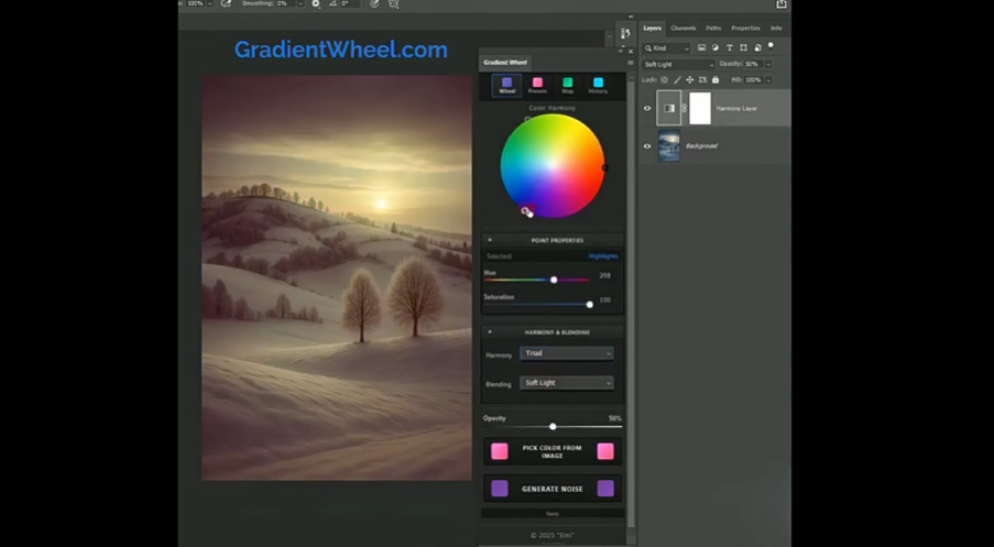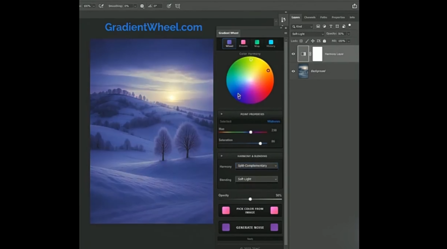 Gradient Wheel 是一款功能强大的 Adobe Photoshop 调色插件,可将电影级的色彩校正功能直接融入您的工作流程。通过直观的色轮界面,您可以像电影和摄影领域的专业调色师一样,精确控制图像中阴影、中间调和高光的色彩平衡。 Gradient Wheel 主要功能: 交互式色轮: 可视化颜色控制 – 拖动色轮上的点即可实时调整颜色 三个色调范围 – 分别控制阴影、中间调和高光 实时预览 –