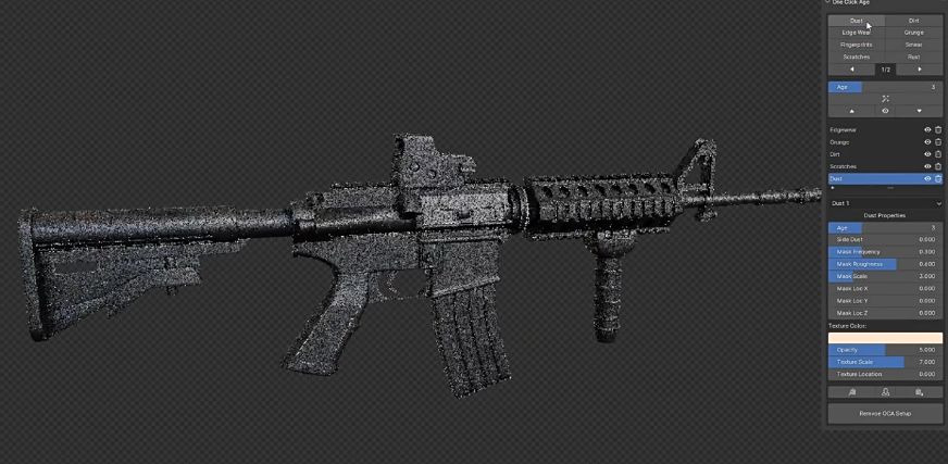 One Click Age 是一款适用于 Blender 的材质老化插件,主打一键式工作流,可快速为任意材质添加真实的磨损、污垢、划痕和老化细节,无需复杂节点搭建;它提供直观的控制界面,支持随机生成多种老化变化,适合高效制作写实资产,是面向追求速度与真实感的建模与材质制作用户的实用工具。
