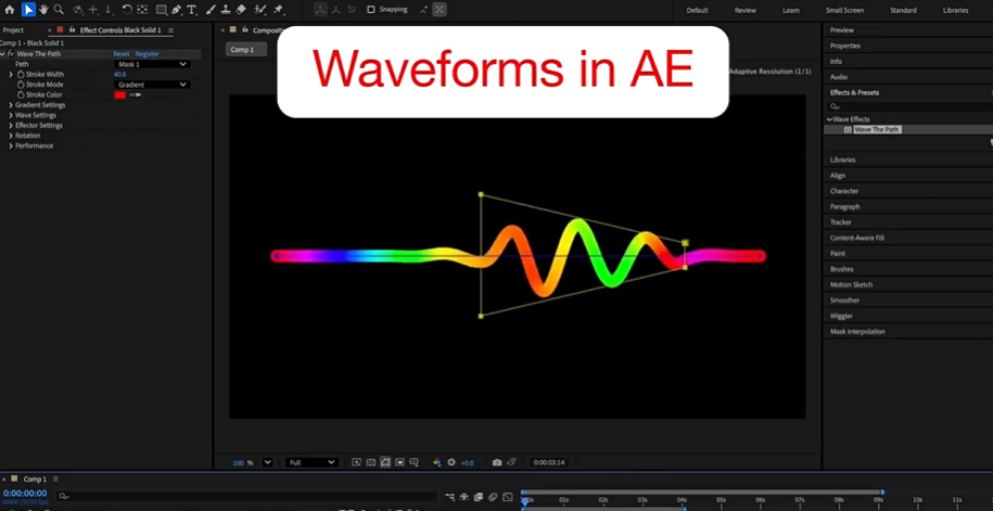 Wave The Path 为 After Effects 带来轻松便捷的波形动画效果,能将任意路径迅速转换成流畅的波形动画,让动态线条充满节奏感与表现力。用户可以精细控制波形的形状、振幅、频率、速度与方向,实现从柔和波纹到强烈振荡的各种视觉效果。它支持实时预览、高效渲染和多种波形类型(如正弦、三角、方波等),并可以通过遮罩等方式限定动画作用区域,极大提升创意表达的灵活性与效率。该插件旨在简化波形动画制作流程,适合制作节奏感强的动态图形、音频可视化等视觉效果。
