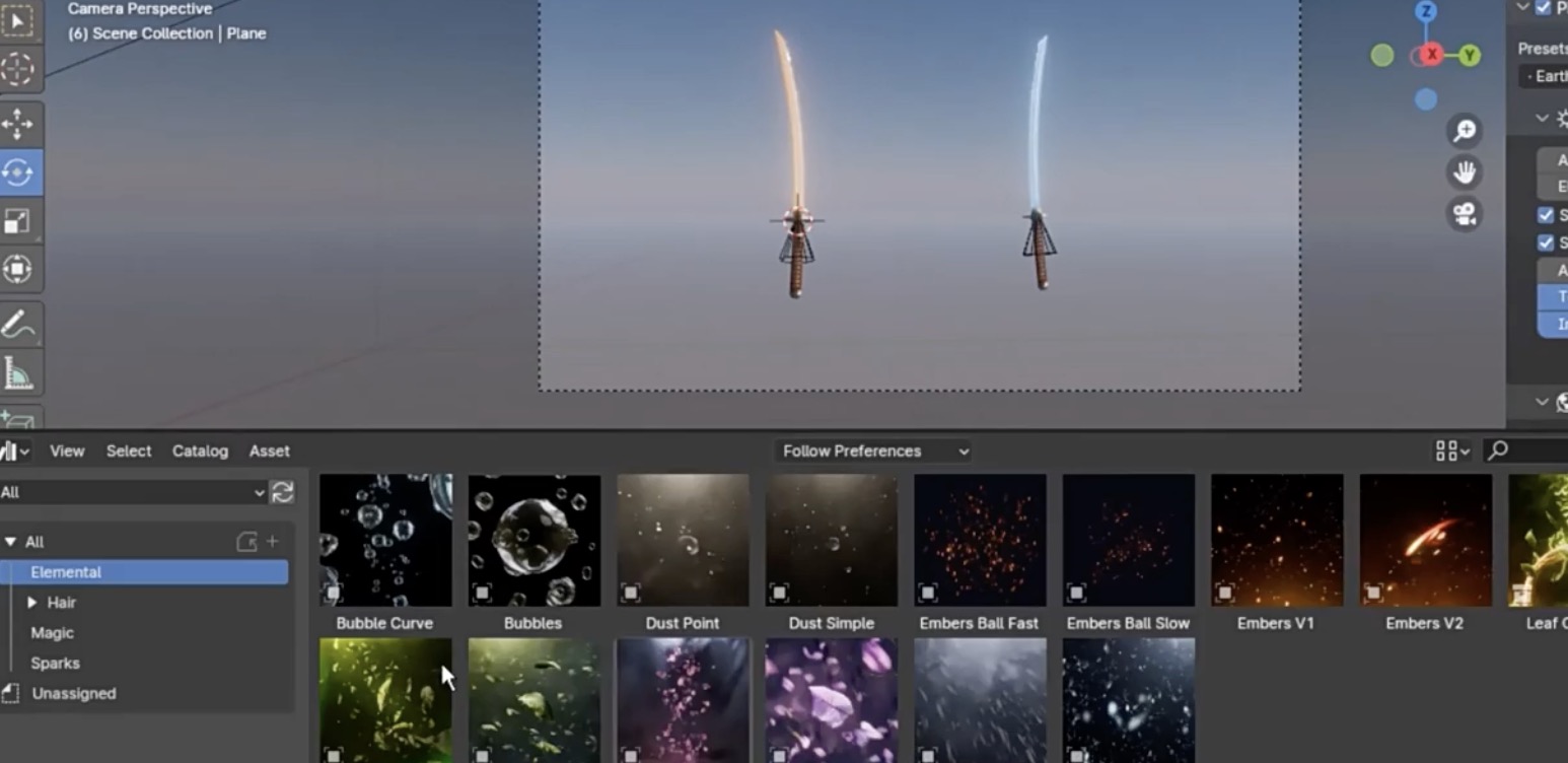 包含了很多特效预设,可以直接用火焰、能量、雪、雨 、花瓣、树叶、粉尘、碎片、电流、闪电、激光、魔法等效果,可以设置多种参数如强度、颜色等。