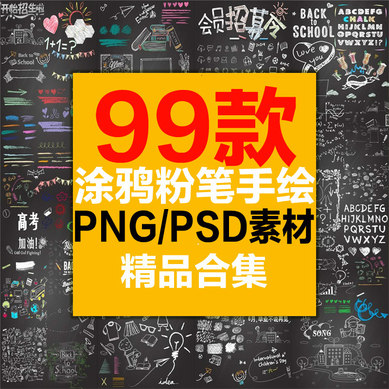 卡通儿童可爱学校手绘简笔画涂鸦学习工具免抠PNG图案 AI矢量素材
