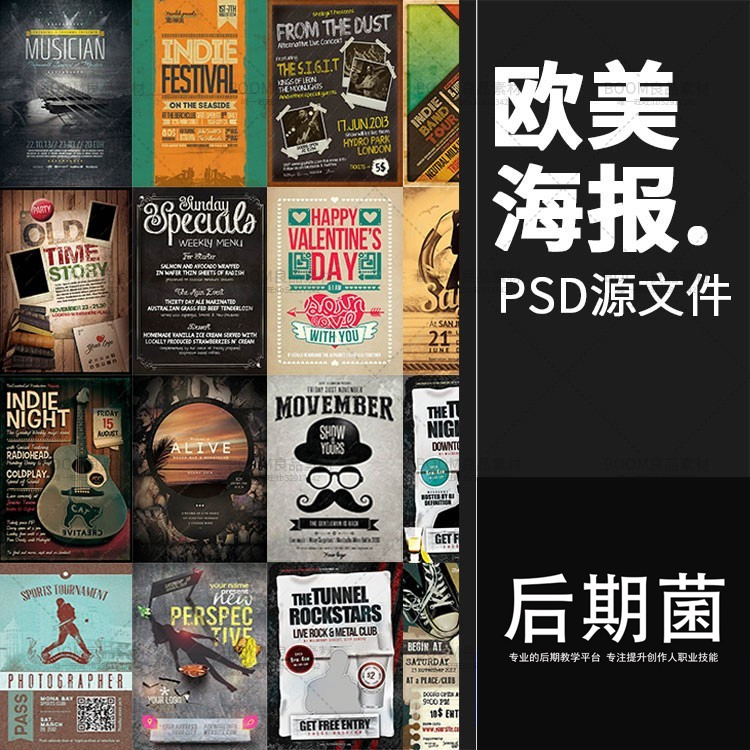 立体几何元素时尚潮流炫彩背景平面广告海报PSD模板设计素材