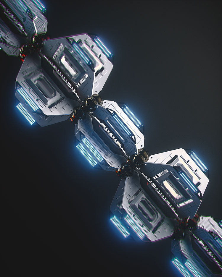 C4D lib4d 3套城市建筑科幻场景背景材质贴图三维模型素材